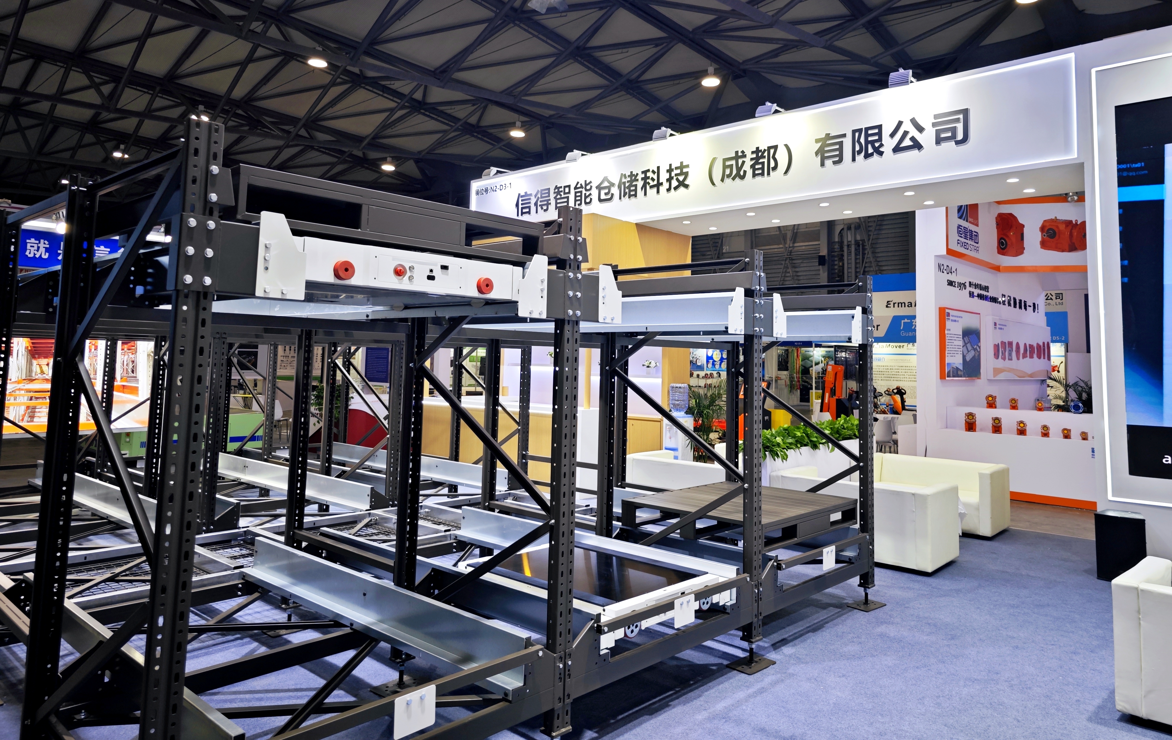 信得货架系统:作为公司的立业之本,此次展示的四向穿梭车货架,以其精湛的冷弯成型工艺、精准的孔位设计、精美的焊接及喷涂工艺,向业界直观传递了信得在仓储基础设施领域深厚的制造底蕴与可靠的质量标准。